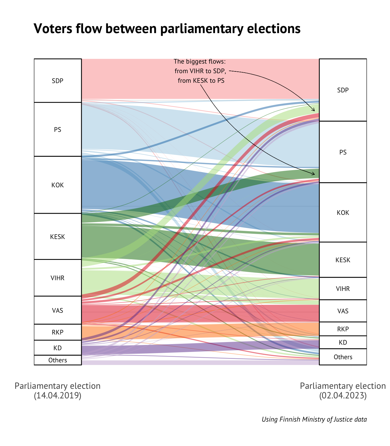 Voter Flows Between Two Parliamentary Elections in Finland